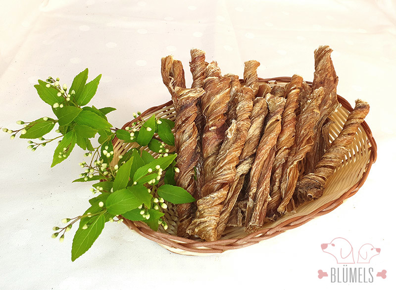 Die getrockneten Kälberblasen Kausticks sind ein sehr gute Leckerli und Kauartikel für die ganz Kleinen. Gerade Welpen freuen sich über die Kausticks. Die Blase vom Kalb ist zwar widerstandsfähig aber überfordert Hund oder Welpen nicht.